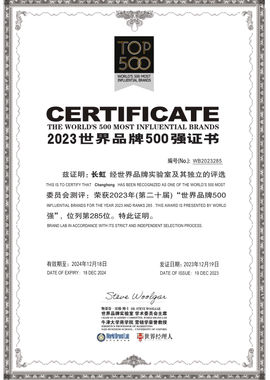 好 消 息 2023 年度《世界品牌500強(qiáng)》排行榜揭曉 長虹排名世...